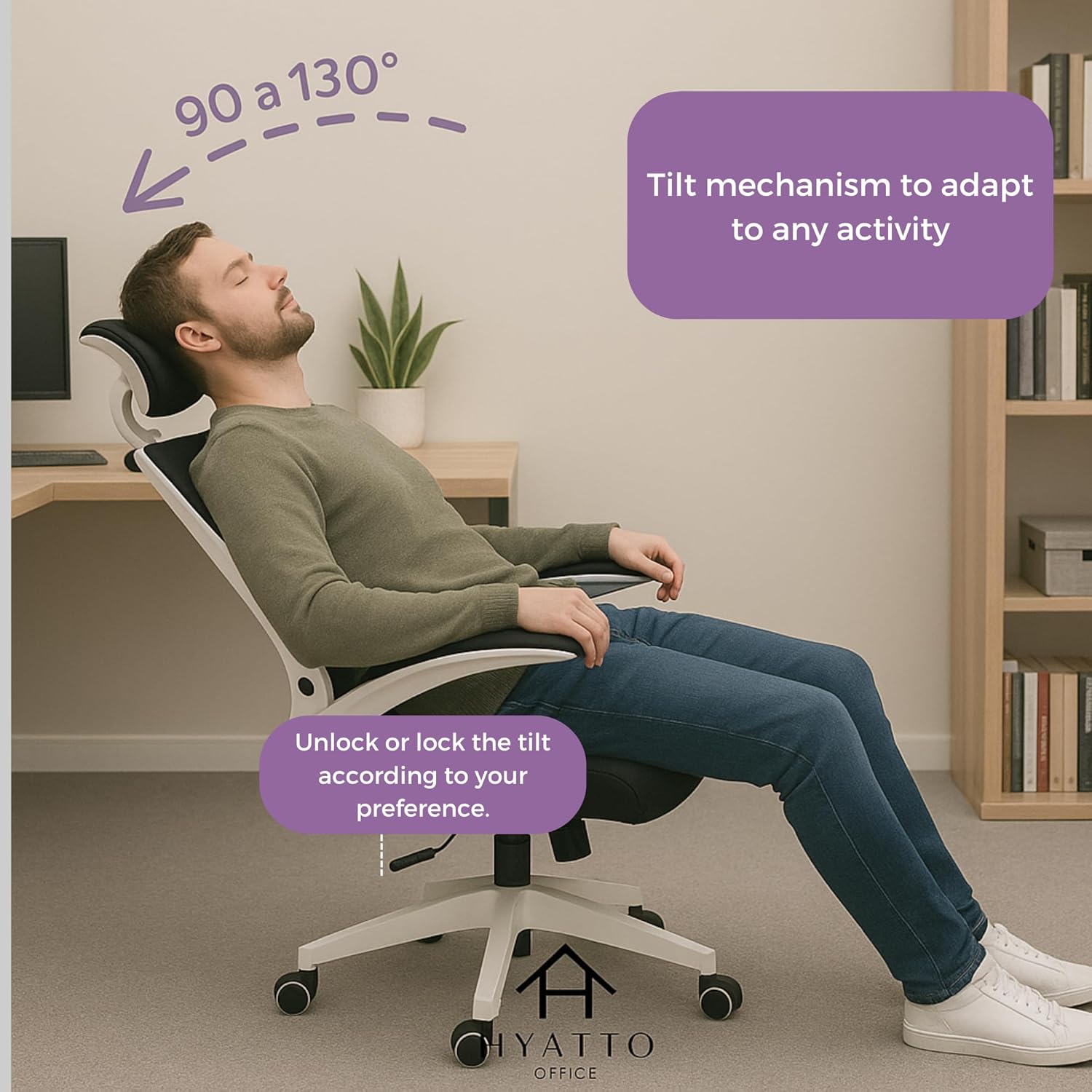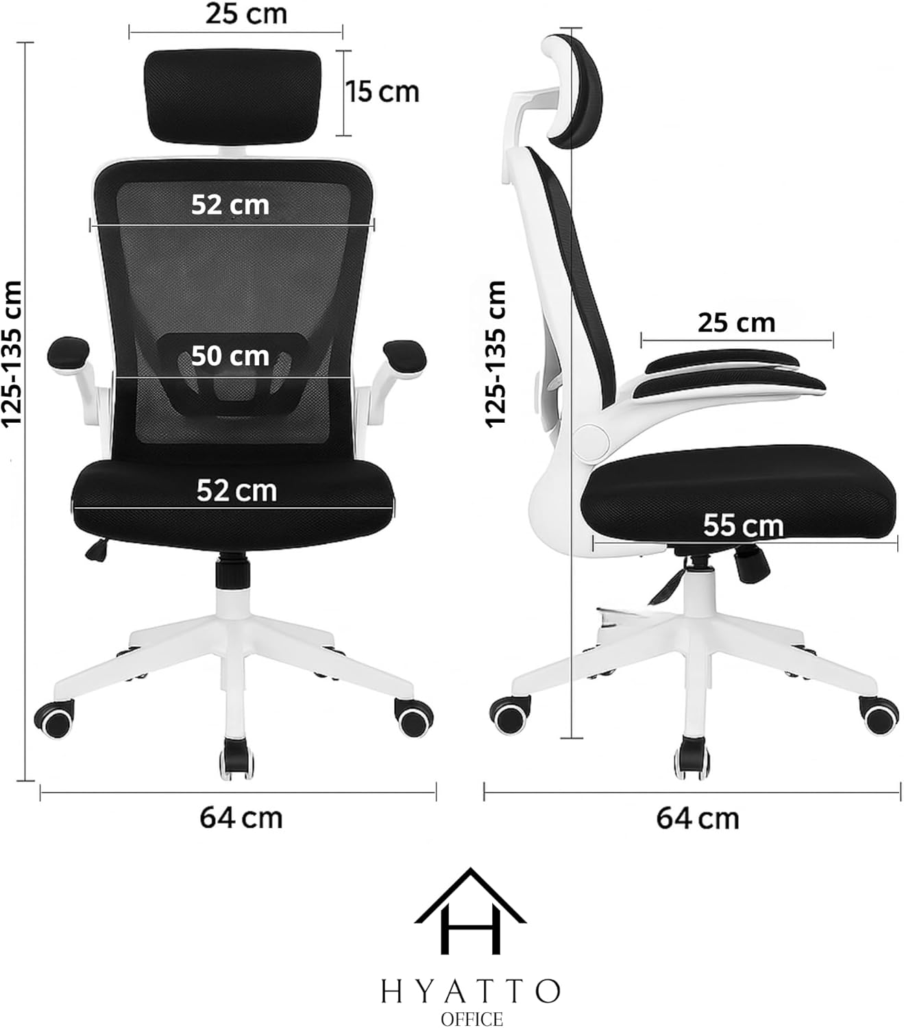 Adjustable seat height 38–48 cm and recline from 90–135°