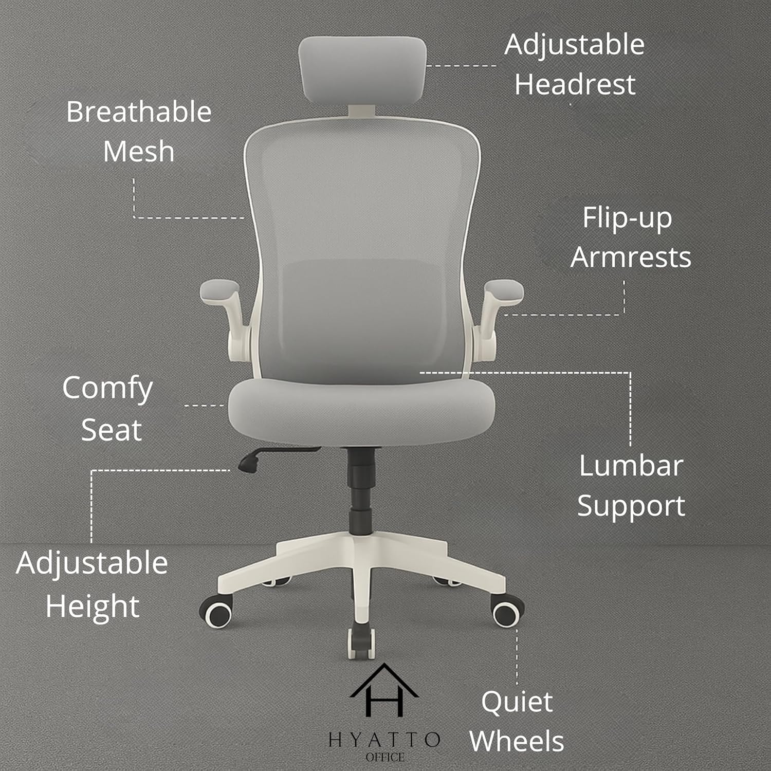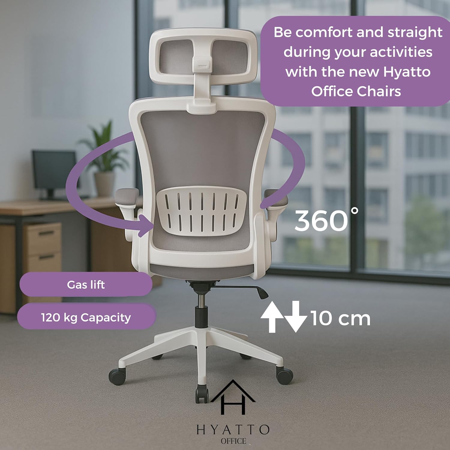 Designed for comfort, flexibility and everyday practicality, the HYATTO OFFICE ergonomic chair is ideal for anyone working or studying from home. Its clean white and grey design fits modern interiors while offering the support you need for long sitting sessions.
